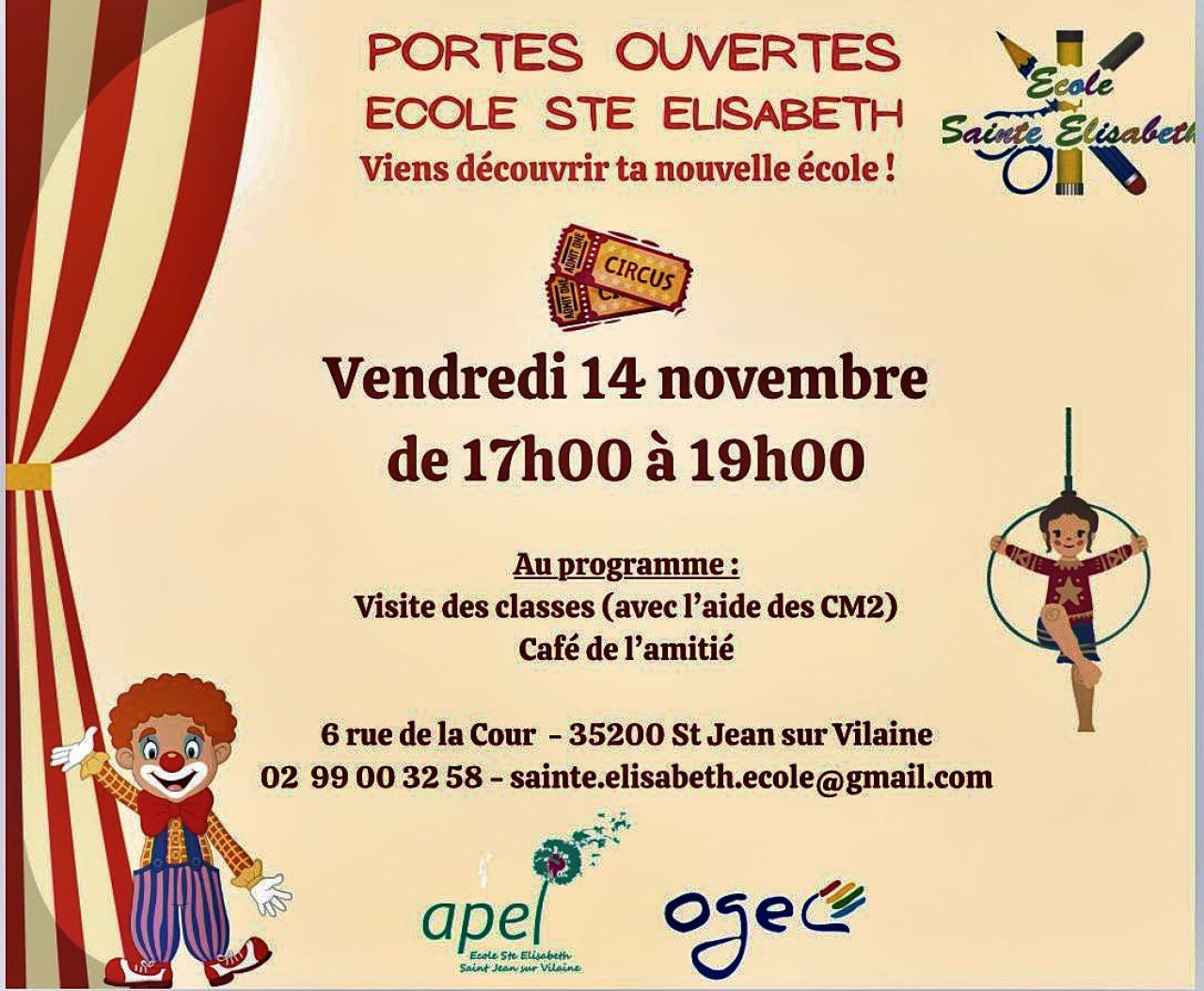 PORTES OUVERTES de l'école VENDREDI 14 NOVEMBRE de 17h à 19h